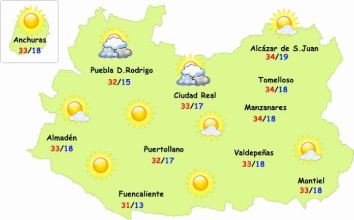 El sábado viene con un ambiente muy parecido. El sol matinal dará paso por la tarde a alguna nube de evolución poco importante que sólo dejaría algún intervalo nuboso por los Montes de Toledo y el Campo de Montiel pero que en ningún caso suponen riesgo de tormenta.