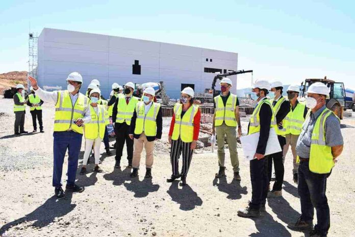 La consejera de economía y empresas, Patricia Franco, junto con los concejales de promoción económica, Félix Calle, y de conocimiento e innovación, Adolfo Muñiz, han visitado las obras de construcción de la nueva planta de Life For Tyres, que se prevé esté operativa en el mes de diciembre y en la que se ha priorizado a los proveedores y empresas de Puertollano.