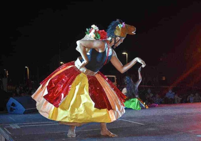Esta noche se presentaba el espectáculo “Historias del otro lado del mar”, a cargo de Vivir en Flor & Escena Multimedia Laboratorio Creativo, en las pistas multiusos del Barrio La Granja. Una representación que utiliza el multilenguaje combinando la narración oral, la danza, la música, la poesía y la expresión plástica, tomando como punto de partida cinco relatos de autores latinoamericanos de Nicaragua, Argentina, Brasil, Venezuela y Chile, que cobran vida, voz y cuerpo en las interpretaciones de Flor Canales y Akaida Orozco.