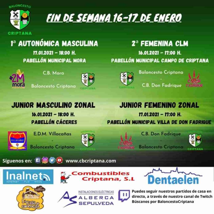 Los chicos cadetes vuelven a jugar fuera de Campo de Criptana esta vez ante el CB Villacañas equipo que solo ha disputando dos jornadas, consiguiendo vencer en uno de los dos partidos. Por otra parte los el equipo criptanenses que esta semana consigue recuperar a todos sus jugadores buscaran conseguir una victoria ante un de los equipos en edad U-18 de la competición.