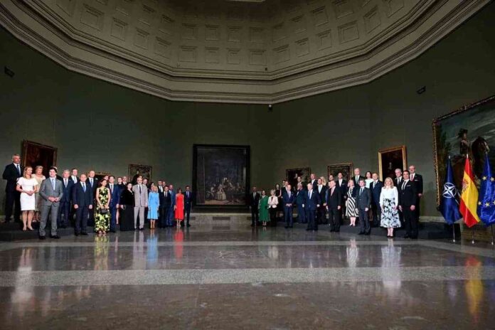 El presidente español Pedro Sánchez ofreció una cena euroatlántica en el Museo del Prado, a la que asistieron líderes de la OTAN y la UE y sus cónyuges: 30 aliados, el secretario general de la Unión, el presidente de la Comisión Europea, Jens Stowe Ertenberg, Ursula von der Leyen, el presidente del Consejo Europeo, Charles Michel y seis estados miembros de la UE no pertenecientes a la OTAN (Suecia, Finlandia, Chipre, Irlanda, Malta e Irlanda).