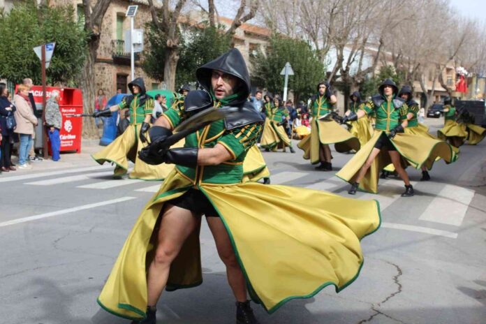Unas 1.200 personas de 12 agrupaciones carnavaleras procedentes de las localidades de Puerto Lápice, Madridejos, Quintanar de la Orden, Arenas de San Juan, Mota del Cuervo, Fuente El Fresno, Daimiel, Fernán Caballero, Pozuelo de Calatrava, Tomelloso y Villarrubia de los Ojos han desfilado por las calles del municipio ante multitud de vecinos y visitantes que no han querido perderse un año más la cita con el color, el espectáculo y la magia de las coreografías del Carnaval.