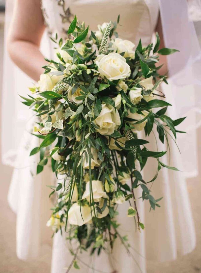 Ramos de novia para bodas veraniegas blancos y en cascada