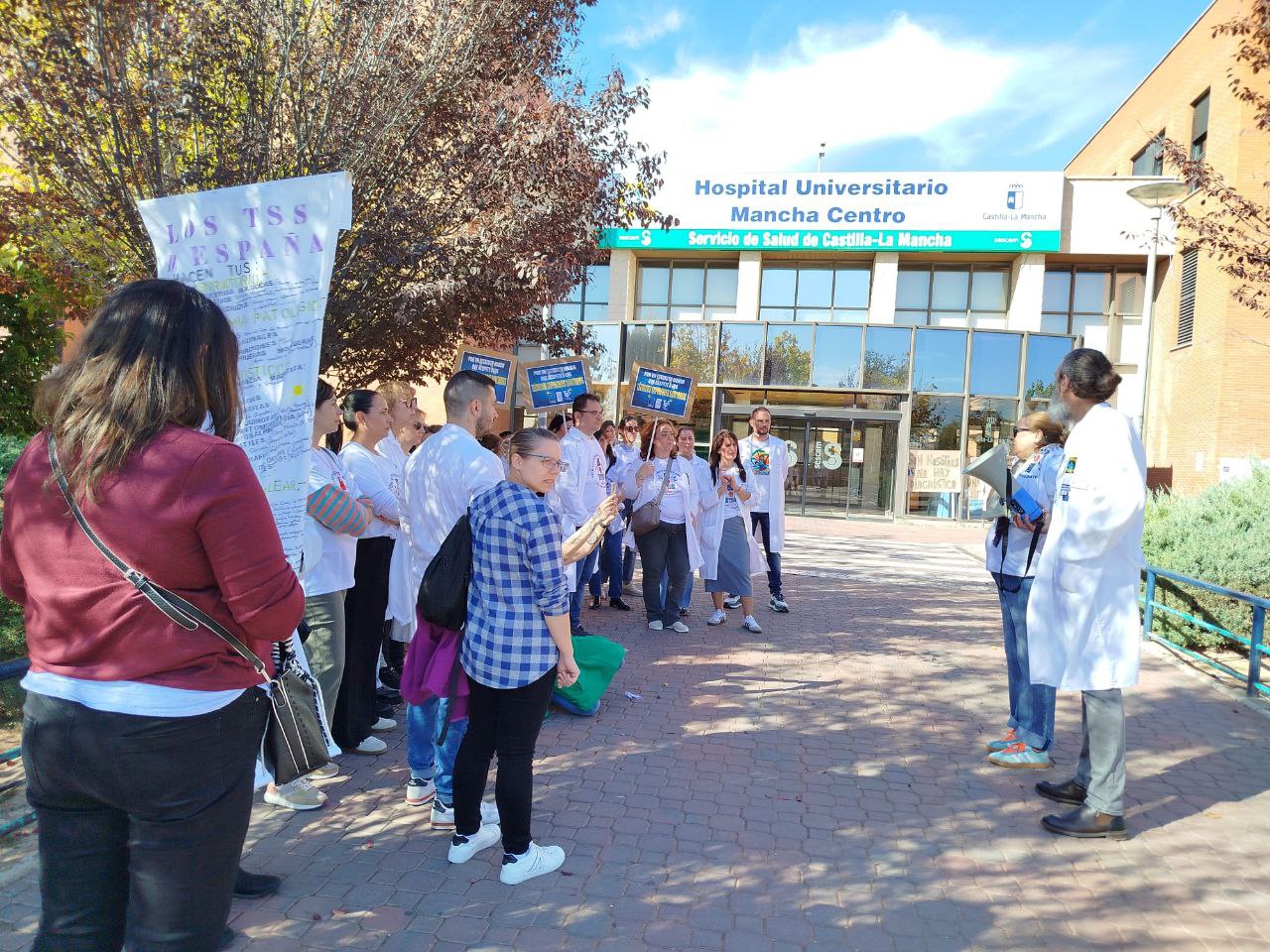 Los Técnicos Superiores Sanitarios del Hospital Mancha Centro han participado en su cuarta jornada de huelga nacional, un día después de la gran manifestación celebrada en Madrid.