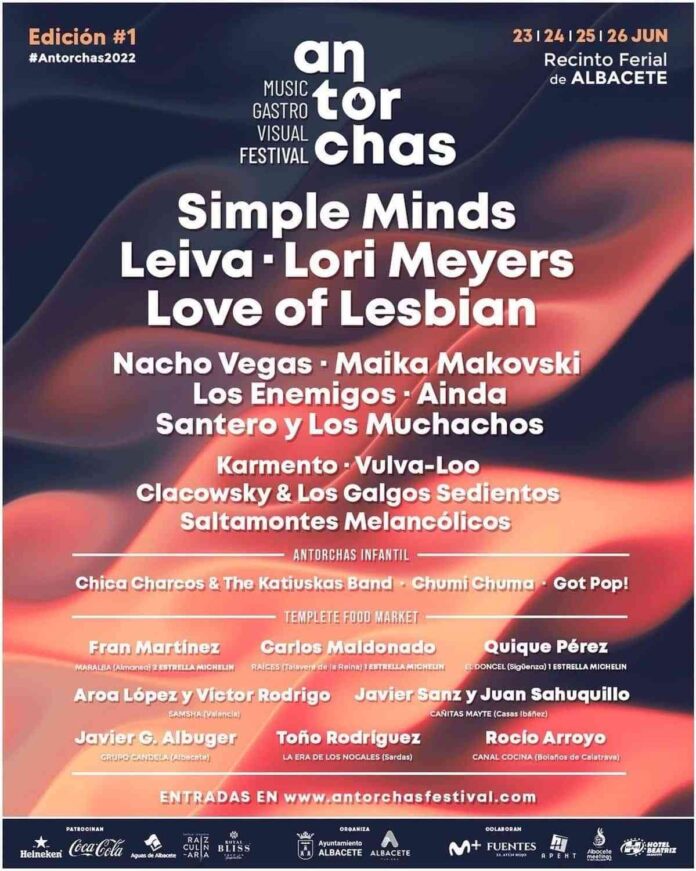 La localidad de Albacete tiene todo preparado para acoger el Antorchas Festival 2022 en lo que será su Edición 1 –tras la Edición 0 del pasado año marcada por las restricciones derivadas de la pandemia–, una cita que aunará cabezas de cartel nacionales e internacionales de la talla de Leiva, Love Of Lesbian, Simple Minds, Lory Meyers, Maika Makovsky o Nacho Vegas con chefs de alta cocina como los estrellados Carlos Maldonado (Raíces), Fran Martínez (Maralba)