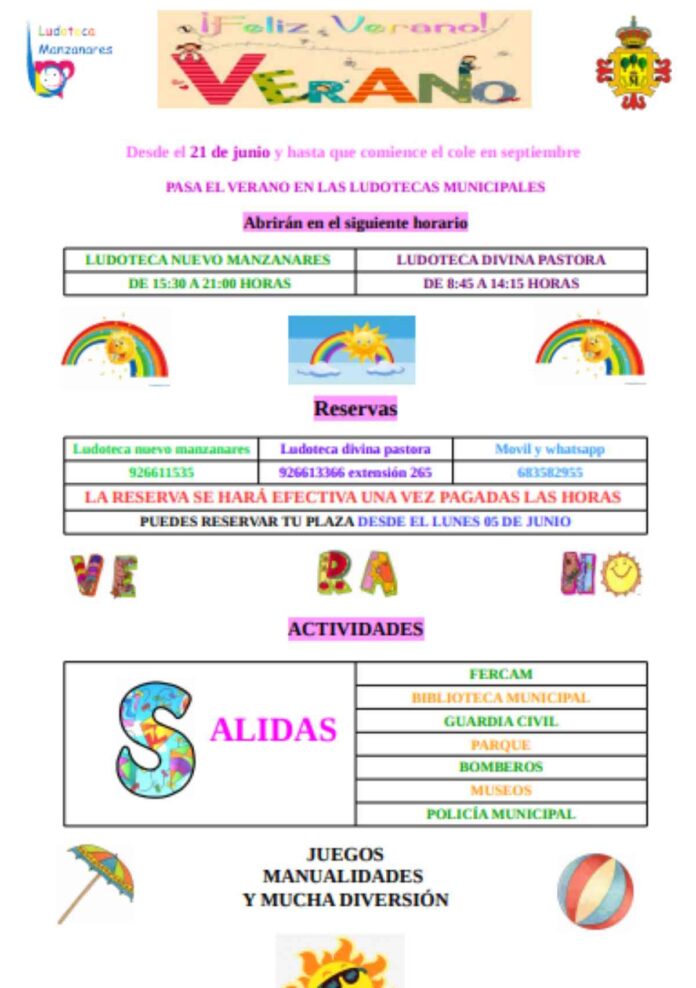 Ludotecas municipales de Manzanares vacaciones de verano