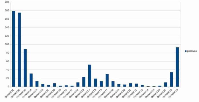 La quinta ola, a nivel local, ya supera la cuarta, registrada en torno a la Semana Santa, que dejó un máximo de 52 positivos en la semana posterior, la número 14 del año.