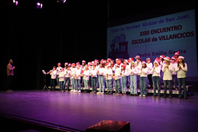 El Teatro Emilio Gavira de Alcázar de San Juan se llenó de espíritu navideño esta mañana al celebrar el XXIII Encuentro Escolar de Villancicos, un evento ya tradicional en el calendario navideño y educativo de la ciudad. Organizado por la Asociación Coros y Danzas de Alcázar de San Juan, este encuentro reunió a aproximadamente 540 escolares de diversos colegios locales, así como a estudiantes del Centro de Educación Especial María Auxiliadora de Campo de Criptana, invitados a participar nuevamente en este entrañable certamen.