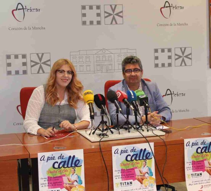 La Asociación ASECEM ha presentado la nueva edición de su actividad «A pie de calle» que celebrará los días 13 y 14 de septiembre coincidiendo con la prueba ciclista la «Titán de La Mancha». La presentación, que se ha celebrado en el ayuntamiento, ha corrido a cargo de la concejala de Comercio, Bárbara Sánchez Mateos, y el vocal de comercio de ASECEM, Fernando Barrilero.