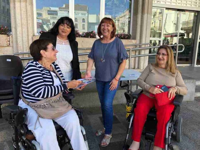 La concejala de Acción Social, Matilde Hinojosa, ha participado este mediodía en la mesa informativa y cuestión que la asociación Ciudad Accesible está llevando a cabo en la Plaza Mayor, coincidiendo con la Semana Europea de la Movilidad.
