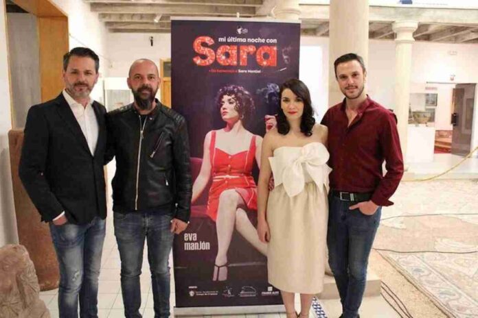 La obra si sitúa en una noche de 1962 cuando Sara es ya una estrella mundial que acaba de volver de México, es un boom en taquilla con la Violetera o El último Cuplé y quiere irse para seguir creciendo como actriz pero tiene antes que resolver un contrato con su discográfica (y su productor), explica la protagonista Eva Manjón, en esta presentación vestida por el diseñador alcazareño Candelas y Felipa (Guillermo Bustamante).