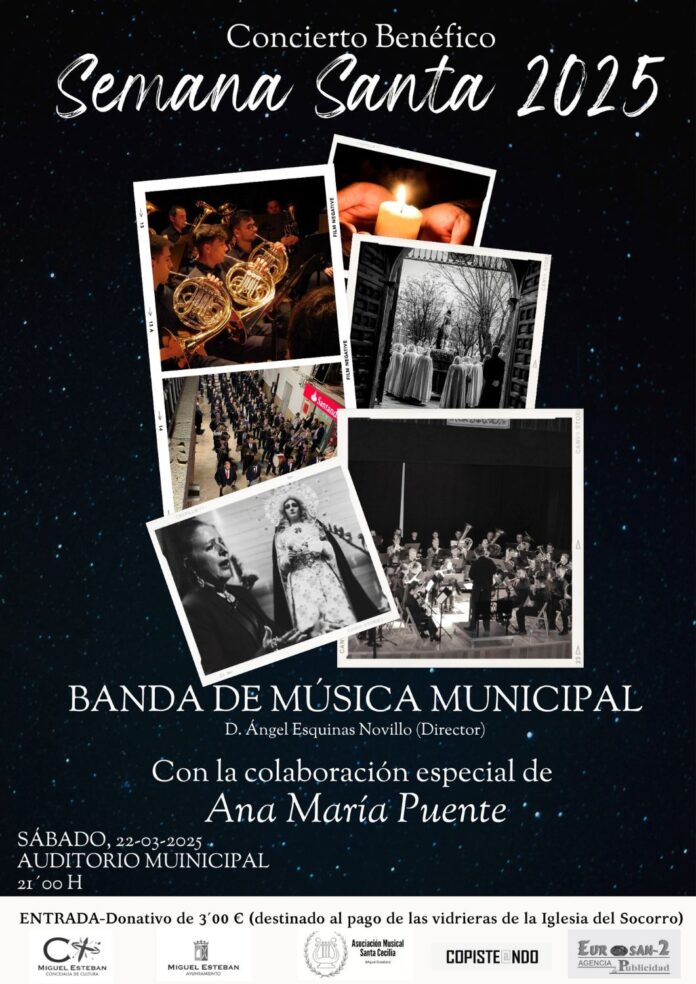 Miguel Esteban se prepara para celebrar la Semana Santa con un variado programa cultural, que arranca este sábado, 22 de marzo, con el tradicional concierto de la Banda de Música Municipal. El evento, que comenzará a las 21:00 horas en el Auditorio Municipal, contará con la participación especial de la talentosa artista local Ana María Puente, conocida popularmente como “La Pelirroja”.