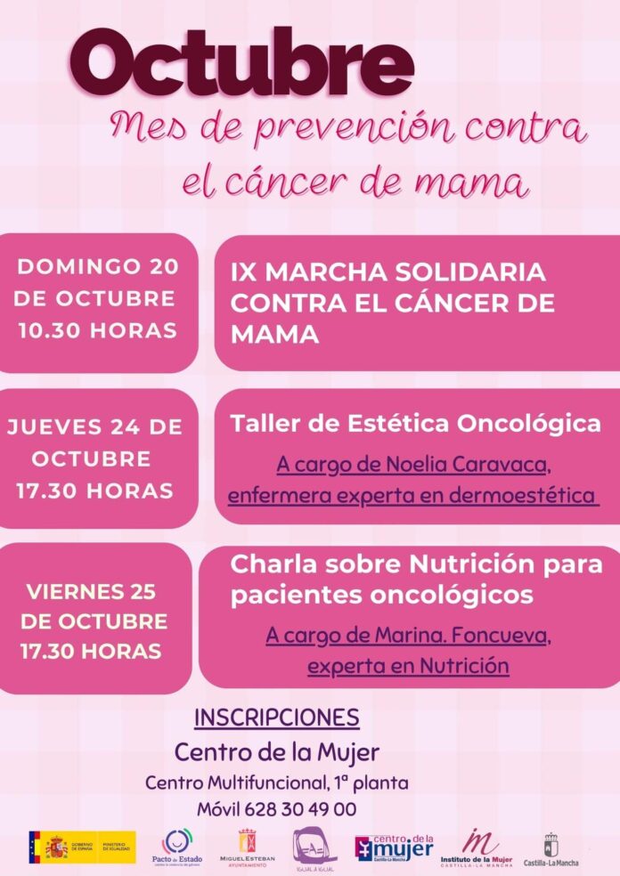 El Ayuntamiento de Miguel Esteban, ubicado en la provincia de Toledo, ha puesto en marcha una serie de actividades en colaboración con la Concejalía de Familia y el Centro de la Mujer del municipio para conmemorar el Día Mundial de la Lucha contra el Cáncer de Mama, que se celebra el próximo 19 de octubre. Estas iniciativas buscan aumentar la concienciación sobre esta enfermedad y apoyar a quienes la padecen.