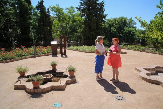 Acompañada por la directora del Museo, Rosa Becerril, Milagros Tolón pudo observar las características que hacen del Jardín alto un área destacada del conjunto museístico. Diseñado por el marqués de la Vega Inclán, este espacio mantiene su estructura original de escalonamiento en tres niveles, conservando elementos como setos bajos, una fuente a ras del suelo y una elegante pérgola. Además, está decorado con restos arqueológicos que crean un ambiente romántico, complementado por la presencia de flora autóctona de Castilla.