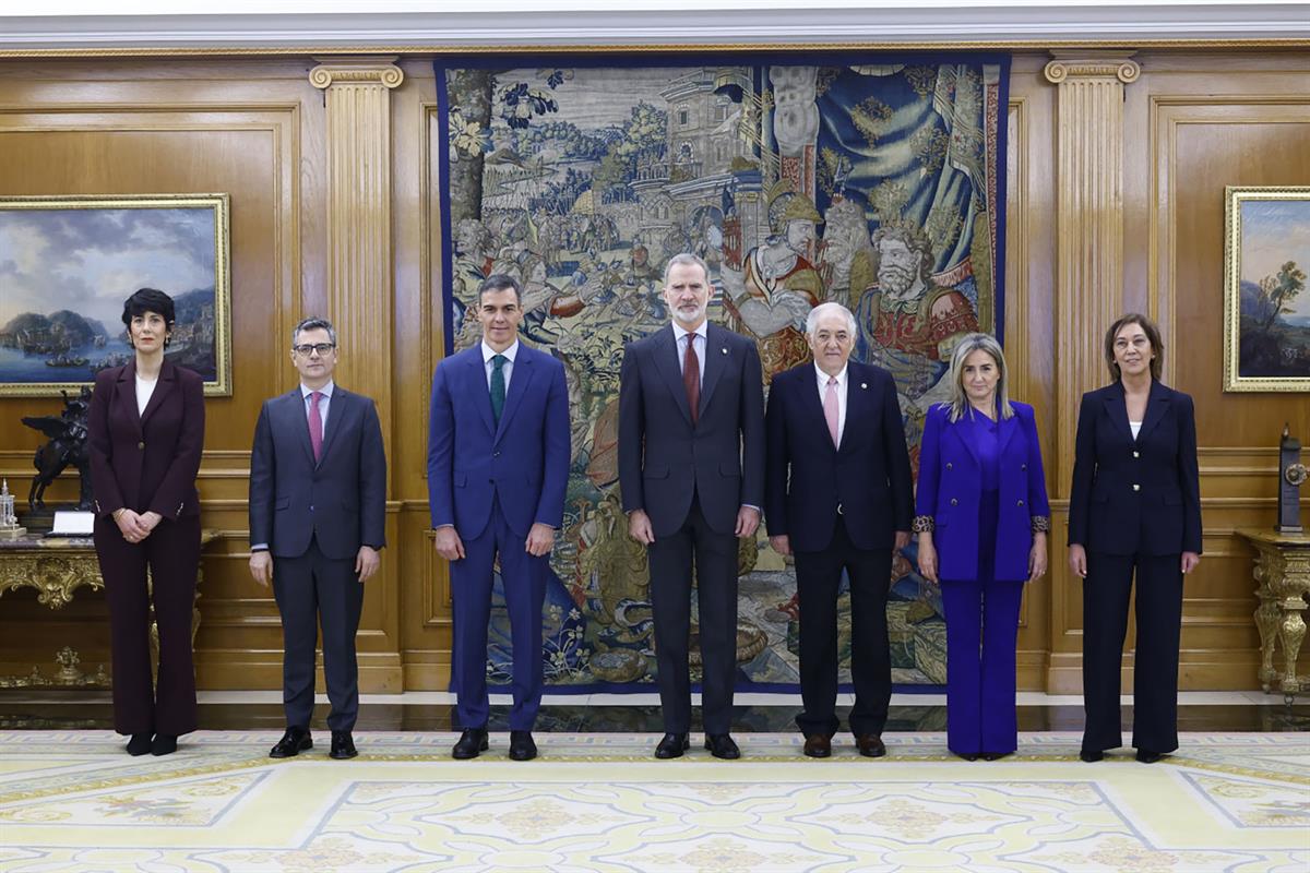 En un solemne acto celebrado en el Salón de Audiencias del Palacio de La Zarzuela, Milagros Tolón ha prometido su cargo como ministra de Educación, Formación Profesional y Deportes. La ceremonia ha contado con la presencia del rey Felipe VI, el presidente del Gobierno, Pedro Sánchez, y el ministro de la Presidencia, Justicia y Relaciones con las Cortes, Félix Bolaños, quien ha actuado como notario mayor del reino.