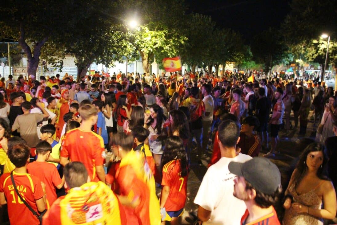El parque municipal se convirtió en el epicentro de la celebración, donde miles de aficionados se reunieron para festejar y disfrutar del emocionante partido. Banderas españolas ondeaban al viento, rostros pintados de rojo y amarillo, y un ambiente de júbilo y alegría se apoderaba de la ciudad. La fan zone estuvo animada por un disc jockey que mantuvo la fiesta hasta altas horas de la noche.