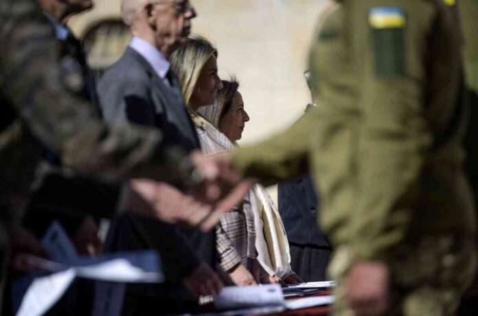 La ministra de Defensa, Margarita Robles, ha presidido una ceremonia en la que se entregaron diplomas a 200 militares ucranianos que completaron con éxito un curso de formación básica en la Academia de Infantería de Toledo. El curso comenzó el 3 de marzo en la Unidad de Formación de Combate de la Misión de Asistencia Militar de la Unión Europea y fue supervisado por el Mando de Operaciones. El curso duró casi cinco semanas intensivas, con seis días y medio de instrucción en sesiones diarias de 10 horas. Los militares recibieron formación en cinco áreas, desde la instrucción básica hasta el tiro, la lucha contra explosivos, los primeros auxilios y el combate en zonas urbanas.