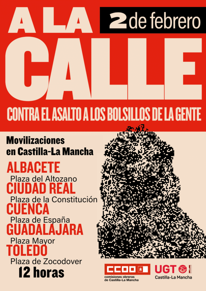 El 2 de febrero, diversas movilizaciones tuvieron lugar en las principales capitales de Castilla-La Mancha y en varias ciudades de todo el país, congregando a un amplio grupo de ciudadanos de diferentes sectores que se unieron para hacer oír sus demandas sobre cuestiones de carácter social, económico y político que impactan a sus comunidades.