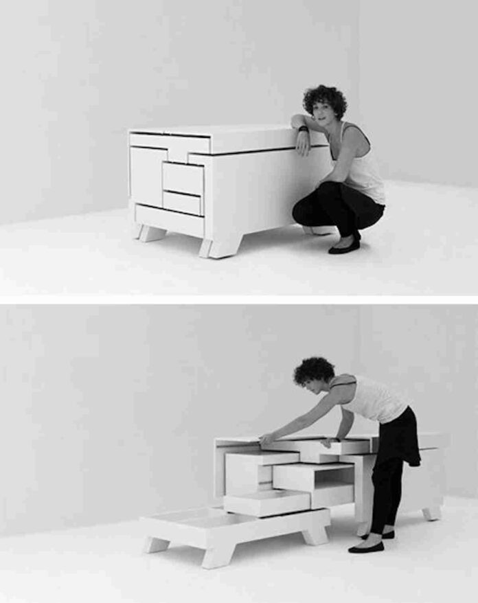 Pero Transformer Shelf es una creación de mueble cajonera de Martin Seammer. A simple vista puede parecer un sencillo escritorio o aparador, aunque sus endiduras laterales ya nos hace sospechar que bajo ella hay algo más. Un mueble que tiene la peculiaridad de ser totalmente personalizable.