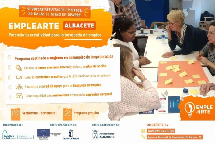 El 23 de septiembre finaliza el plazo para que mujeres en desempleo de larga duración de Albacete se apunten a la segunda edición de EmpleArte, innovador programa de orientación laboral para impulsar una búsqueda de empleo innovadora y diferente, que despierte el interés de las empresas.