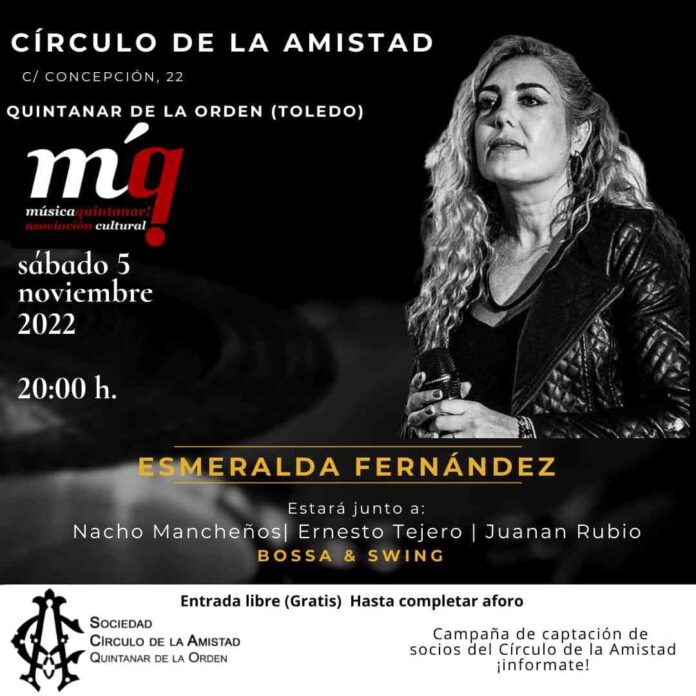 La Asociación Cultural Música Quintanar de la Orden (Toledo) celebrará su aniversario el próximo sábado, 5 de noviembre, con un gran concierto en el Círculo de la Amistad a cargo del grupo Bossa & Swing y la colaboración de la artista quintanareña Esmeralda Fernández a las 20.00 horas.
