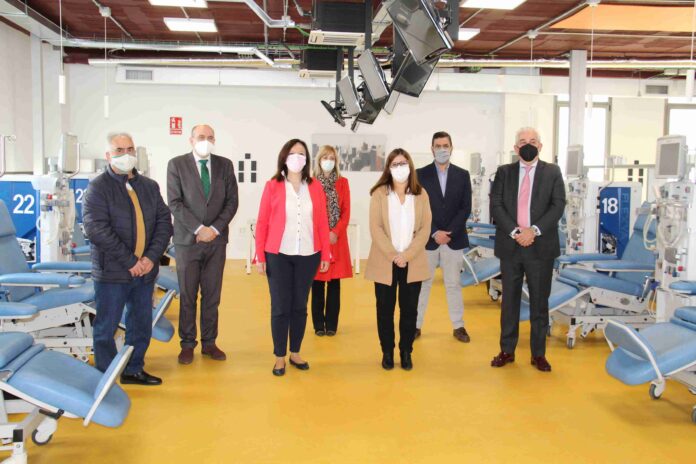 Un espacio renovado y mucho más amplio que cuadriplica la capacidad asistencial que había hasta ahora, y que va a disponer de una sala de hemodiálisis de 32 puestos, que permitirá atender hasta 192 pacientes en tres turnos. Dispone de la última tecnología para el tratamiento de la insuficiencia renal. Todos los puestos están dotados con televisión, música y conexión a internet individualizada para pacientes, así como control domótico de todas las instalaciones de iluminación y seguridad.