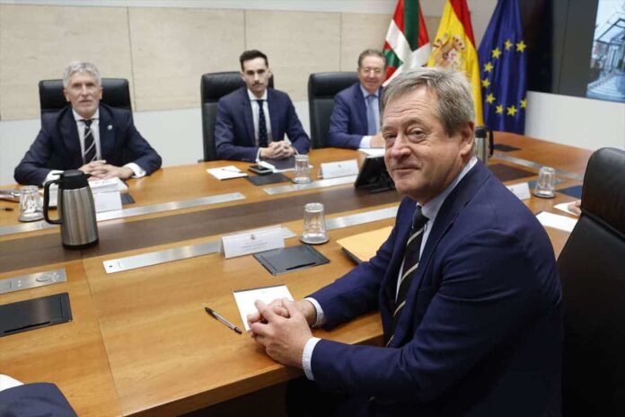 En una reunión celebrada en Madrid, el consejero de Seguridad del Gobierno Vasco, Bingen Zupiria, y el ministro del Interior, Fernando Grande-Marlaska, han acordado extender las labores de la Ertzaintza a las zonas de servicio de aeropuertos y puertos en Euskadi. Esta medida se aplicará de inmediato, aunque requerirá un tiempo para coordinarse adecuadamente, según Zupiria.
