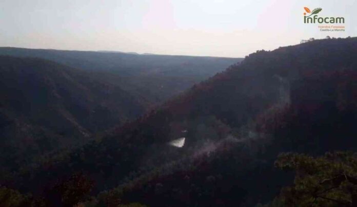 Un total de ocho medios de extinción terrestres, conformados por 40 efectivos, siguen trabajando en las labores de extinción del fuego iniciado esta pasado miércoles de Cañamares que aún está sin controlar, según informa el Sistema de Información de Incendios Forestales del Gobierno de Castilla-La Mancha.