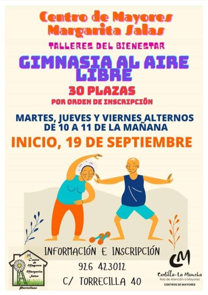 Un taller de gimnasia libre ofrecerá el Centro de Mayores Margarita Salas de Puertollano (Ciudad Real) a partir del próximo 19 de septiembre. La actividad tendrá lugar los días, martes, jueves y viernes alternos en horario de 10 a 11 de la mañana.