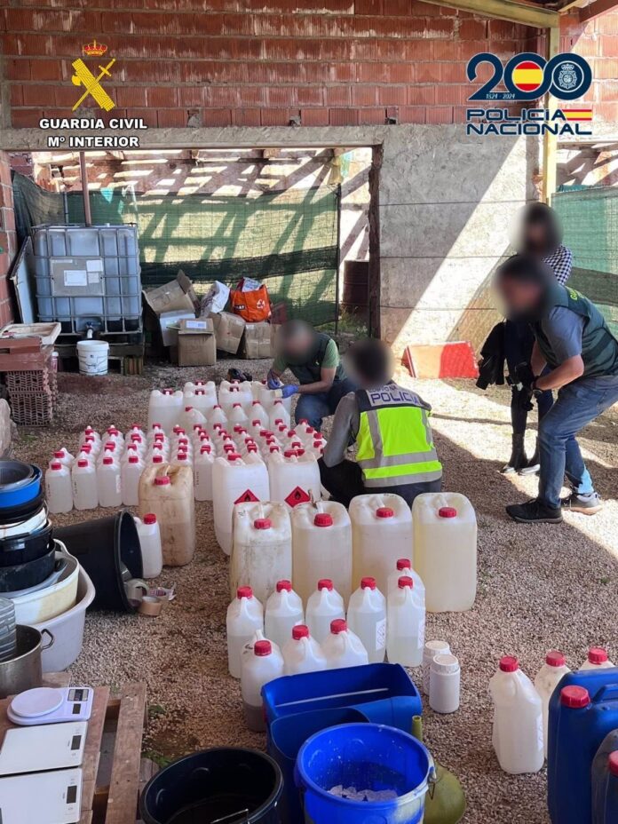 En los registros ejecutados en Madrid, Ciudad Real y Málaga, las fuerzas de seguridad incautaron más de 36 kilogramos de sustancia de corte que se creía cocaína, 1.800 litros de precursores líquidos, más de 200.000 euros, vehículos de alta gama, un arma de fuego, numerosos teléfonos móviles y placas de matrículas falsificadas de diversos países europeos.