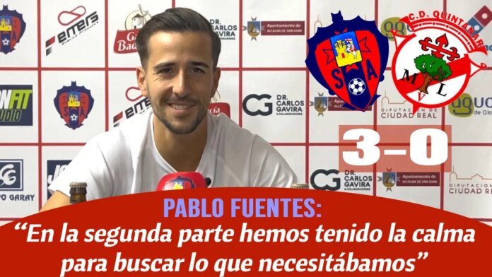 El entrenador del Sporting de Alcázar, Pablo Fuentes, se mostró satisfecho tras la contundente victoria del equipo en casa frente al CD Quintanar en el Grupo 1 de la 1ª Preferente. Fuentes destacó la importancia de esta victoria, ya que el Quintanar, de haber ganado, se habría colocado líder en solitario.