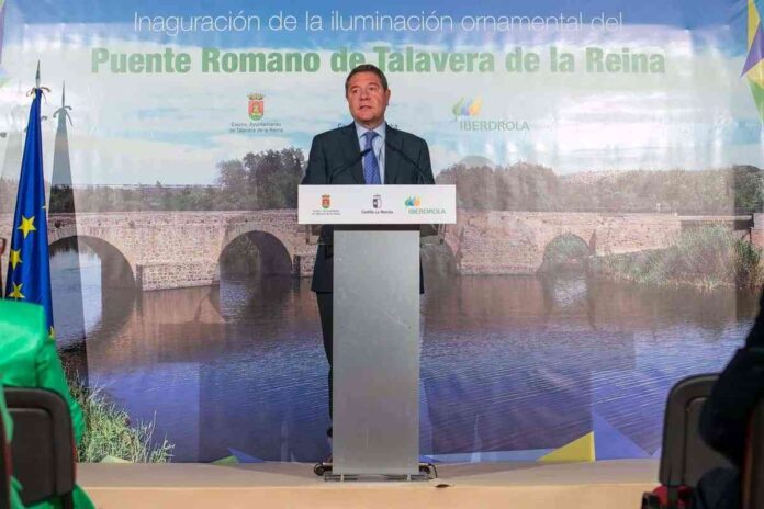 Durante la inauguración, este viernes, de la nueva iluminación ornamental del Puente Romano de Talavera de la Reina, un proyecto que surge del convenio de colaboración firmado entre el Ayuntamiento talaverano y la Fundación Iberdrola en mayo de 2021 y cuya inversión ha ascendido a 80.000 euros, García-Page ha recalcado que, si bien «no hemos conseguido el cien por cien de lo que nos proponíamos en el agua, lo acabaremos haciendo».