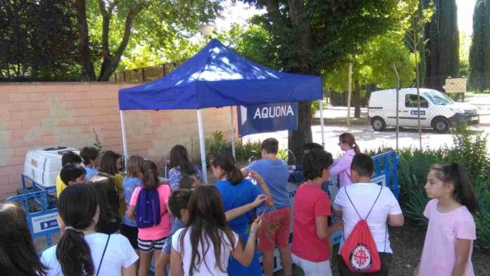 En Ciudad Real, en colaboración con el Ayuntamiento de la capital, Aquona participó de un desayuno saludable en el Huerto Urbano de Pilar. Cerca de 100 niños y niñas, además de profesores y tutores, se pudieron hidratar con la fuente de agua del grifo que Aquona instaló. Se mostró a los participantes 1m3 de agua con botellas de agua, imagen sorprendente que queda siempre grabada en la retina.
