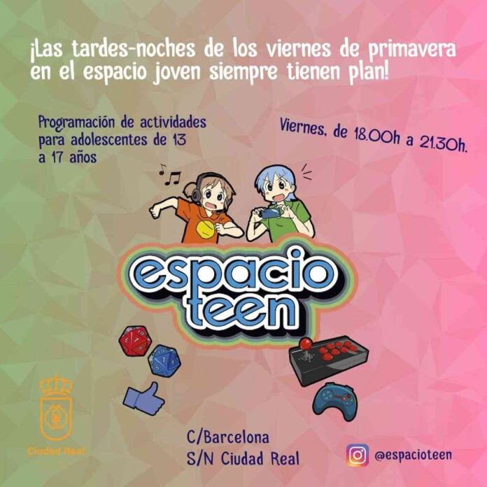 Te divertirás mucho con las actividades del Espacio Teen que para esta primavera ha organizado el Espacio Joven del ayuntamiento de Ciudad Real. Para adolescentes entre 13 y 17 años. Todos los viernes de 18 a 21:30 horas.