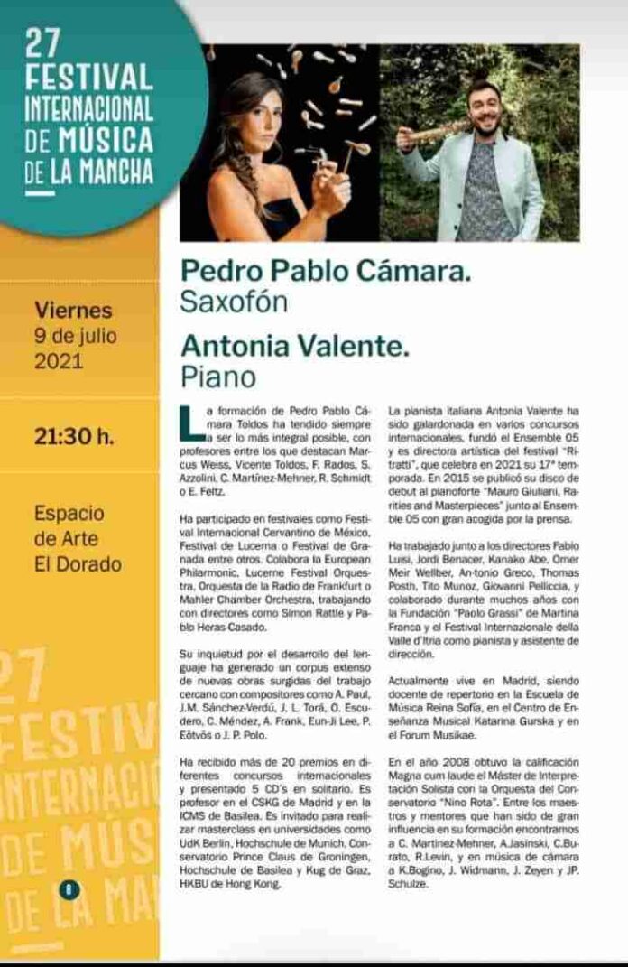 La entrada Pedro Pablo Cámara y Antonia Valente, en el Festival Internacional de Música La Mancha se publicó primero en Diario de Castilla-la Mancha.