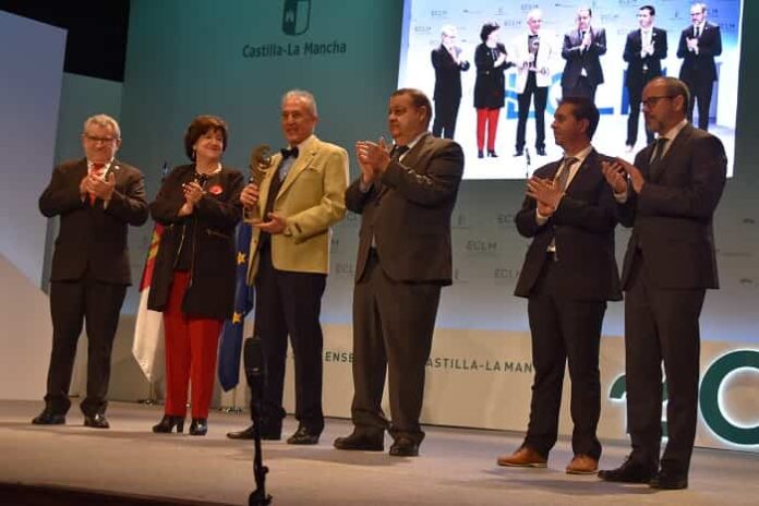 La alcaldesa de Ciudad Real, Pilar Zamora, y el jefe de Servicio de Educación han recogido este mediodía en Villarrobledo de manos del presidente de las Cortes de Castilla-La Mancha, Jesús Fernández Vaquero, el Premio otorgado al Ayuntamiento de Ciudad Real por el Gobierno Regional en el Día de la Enseñanza de Castilla-La Mancha.