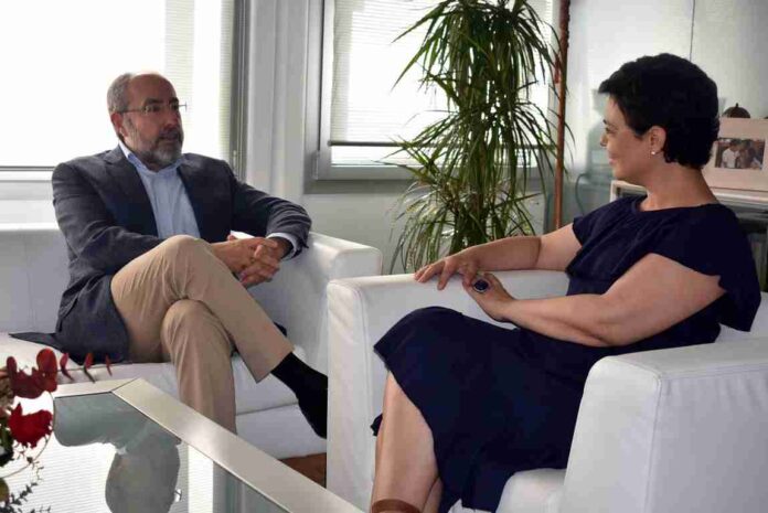 La alcaldesa de Ciudad Real, Pilar Zamora, ha mantenido una reunión con el presidente de la Cámara de Comercio de Ciudad Real, Mariano León, dentro de la ronda de contactos que está manteniendo con diferentes entidades sociales y empresariales tras su toma de posesión.