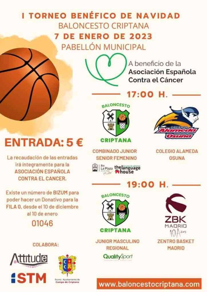 El 7 de enero de 2023 tendrá lugar en el Pabellón Municipal el «I Torneo Benéfico de Navidad» organizado por la Escuela de Baloncesto Criptana y el Club de Baloncesto Criptana.