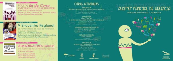 Desde la concejalía de Cultura y Festejos de Herencia (Ciudad Real), ha dado ha conocer la programación primavera-verano para el Auditorio Municipal, en la que tienen cabida más de 15 actividades para todos los públicos, con unos contenidos de calidad, en un ámbito cultural y de ocio.