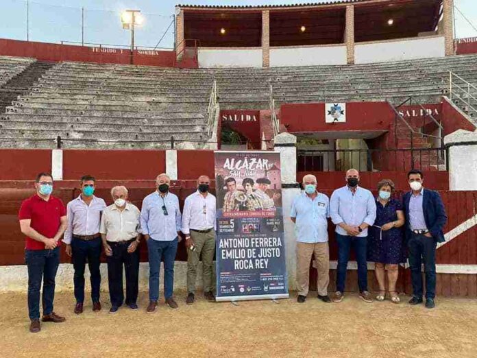 El Concejal de Asuntos Taurinos, Benjamín Gallego y el gerente de Tauroemocion en la zona Este, Javier Vázquez, han presentado esta tarde en la plaza de toros el cartel de la corrida de toros de la Feria y Fiestas de Alcázar de San Juan (Ciudad Real).