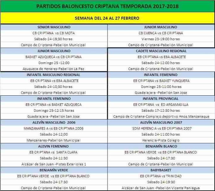 La entrada Previas Baloncesto Criptana 23-24-25 febrero 2018 se publicó primero en Diario de la Mancha.