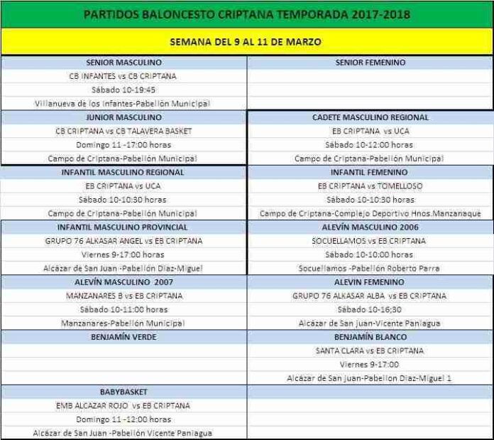 La entrada Previas Baloncesto Criptana (9, 10, 11 de marzo) se publicó primero en Diario de Castilla-la Mancha.