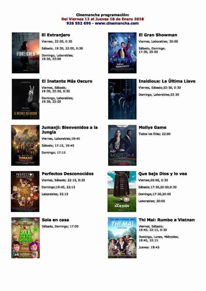 (Podéis ver los horarios ampliando la imagen). Adicionalmente se proyectarán las películas COCO: Sábado y Domingo; 17:15 y FERDINAND: Viernes: 19:30, Sábado y domingo; 17:00