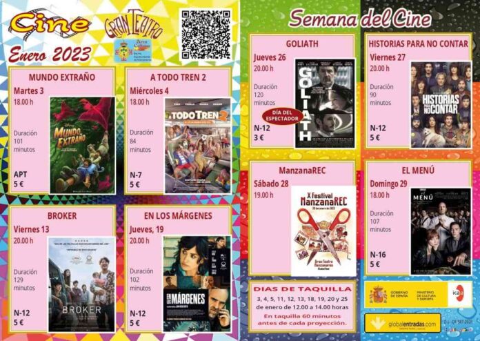 Para finales de enero el Ayuntamiento ha programado la Semana del Cine, que incluye tres películas y un festival de cortos. Comenzará el jueves 26 a las 20 horas con el drama francés ‘Goliath’. Será día del espectador, por lo que la entrada tendrá un precio reducido de 3 euros.