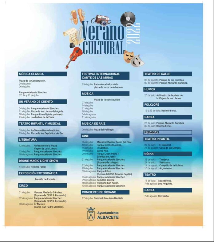 El Verano Cultural 2022 en Albacete viene lleno de interesantes actividades. Son actividades de mucho interés para chicos y grandes que tendrán lugar en distintos lugares de Albacete. Tanto en la capital como en las pedanías.