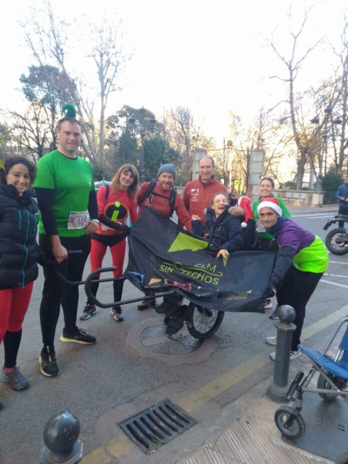 Durante la carrera, un grupo de voluntarios del proyecto «CLM sin Techos» se dedicó a guiar la silla Joelette a lo largo de los casi 7 kilómetros de recorrido. Entre ellos, M.A. Rubio, un participante con discapacidad por movilidad reducida, no solo ayudó en la tarea, sino que también completó la carrera, convirtiéndose en un ejemplo inspirador para todos los asistentes.