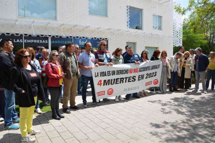 UGT and CCOO Albacete have once again protested in front of the headquarters of the Albacete Confederation of Employers (FEDA) over the recent fatal workplace accident in the province, which claimed the life of a 43-year-old worker at the Ajusa industrial estate. “Workplace safety is not guaranteed,” they said in a press release.