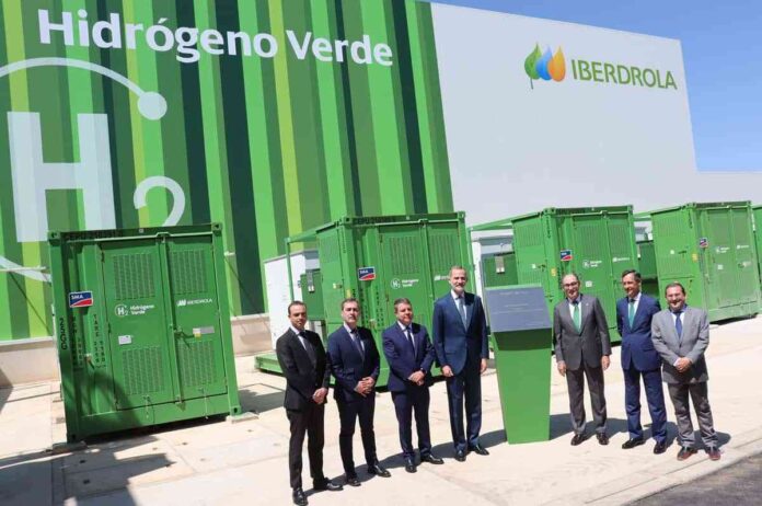 La planta de hidrógeno verde de Iberdrola en Puertollano (Ciudad Real) fue inaugurada hoy por el rey Felipe VI. Esta planta se ha levantado en las instalaciones de Fertiberia para la producción de amoniaco verde.