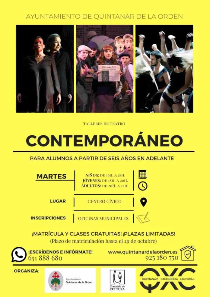 La Concejalía de Cultura del Ayuntamiento de Quintanar de la Orden apuesta, durante este curso, a los Talleres de Teatro, a cargo del actor Alberto Novillo. Se trata de una gran apuesta para que los amantes de este arte se puedan formar y vivir el mundo del teatro desde adentro.