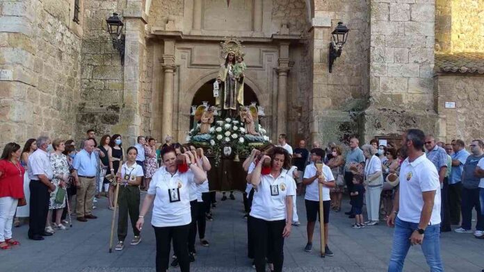 Por último, este domingo, 17 de julio, se celebraba la Misa Solemne en el Templo Parroquial a cargo del vicario parroquial Francisco Aparicio y amenizada por la Coral San Cosme y San Damián. A la misa, a la que asistieron numerosos fieles, le seguía la procesión con la imagen portada en andas por una veintena de mujeres y acompañada por concejales de la Corporación Municipal, autoridades religiosas, y la Banda de Cornetas y Tambores de las Siete Palabras.